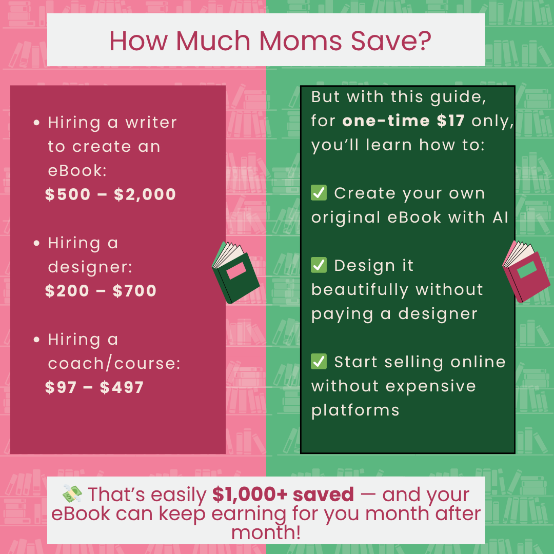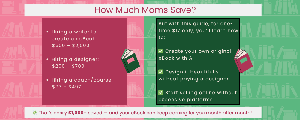 This is perfect for busy moms who want to create passive income without adding extra stress. Whether you’re a stay-at-home mom, working mom, or juggling both — this guide shows you how to turn your everyday skills into an eBook that sells.